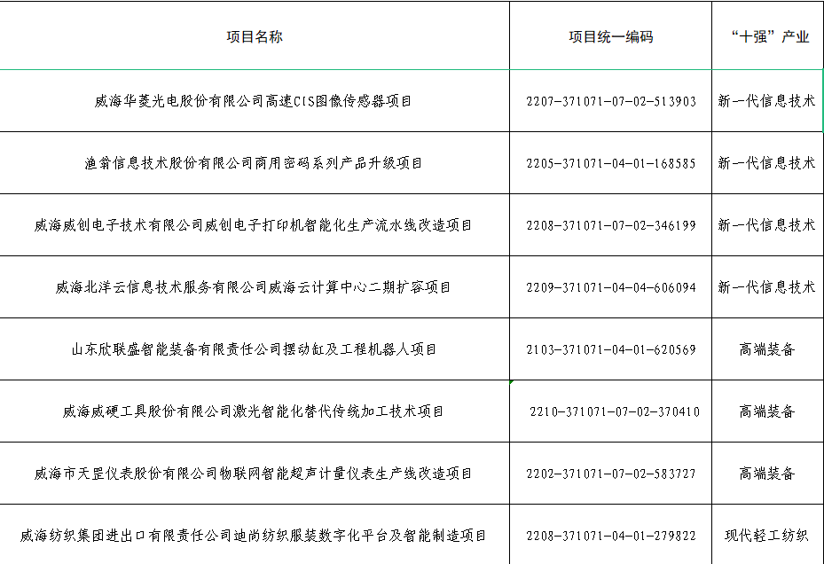 近日服務,山東省新舊動能轉(zhuǎn)換綜合試驗區(qū)建設(shè)領(lǐng)導(dǎo)小組辦公室公布了2023年省新舊動能轉(zhuǎn)換優(yōu)選項目名單,威海高新區(qū)迪尚紡織服裝數(shù)字化平臺及智能制造項目哪些領域、華菱光電高速CIS圖像傳感器項目等8個項目入選姿勢,威海市最多相互融合。